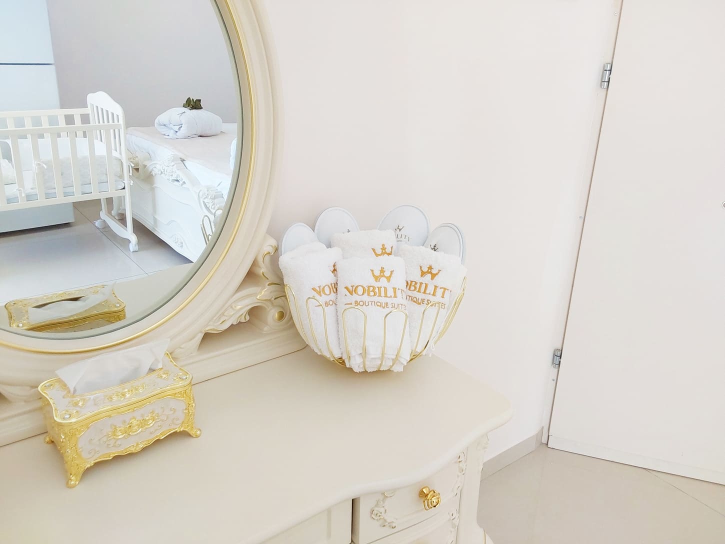 • קומודה מאובזרת הכוללת מראה גדולה ופינת איפור